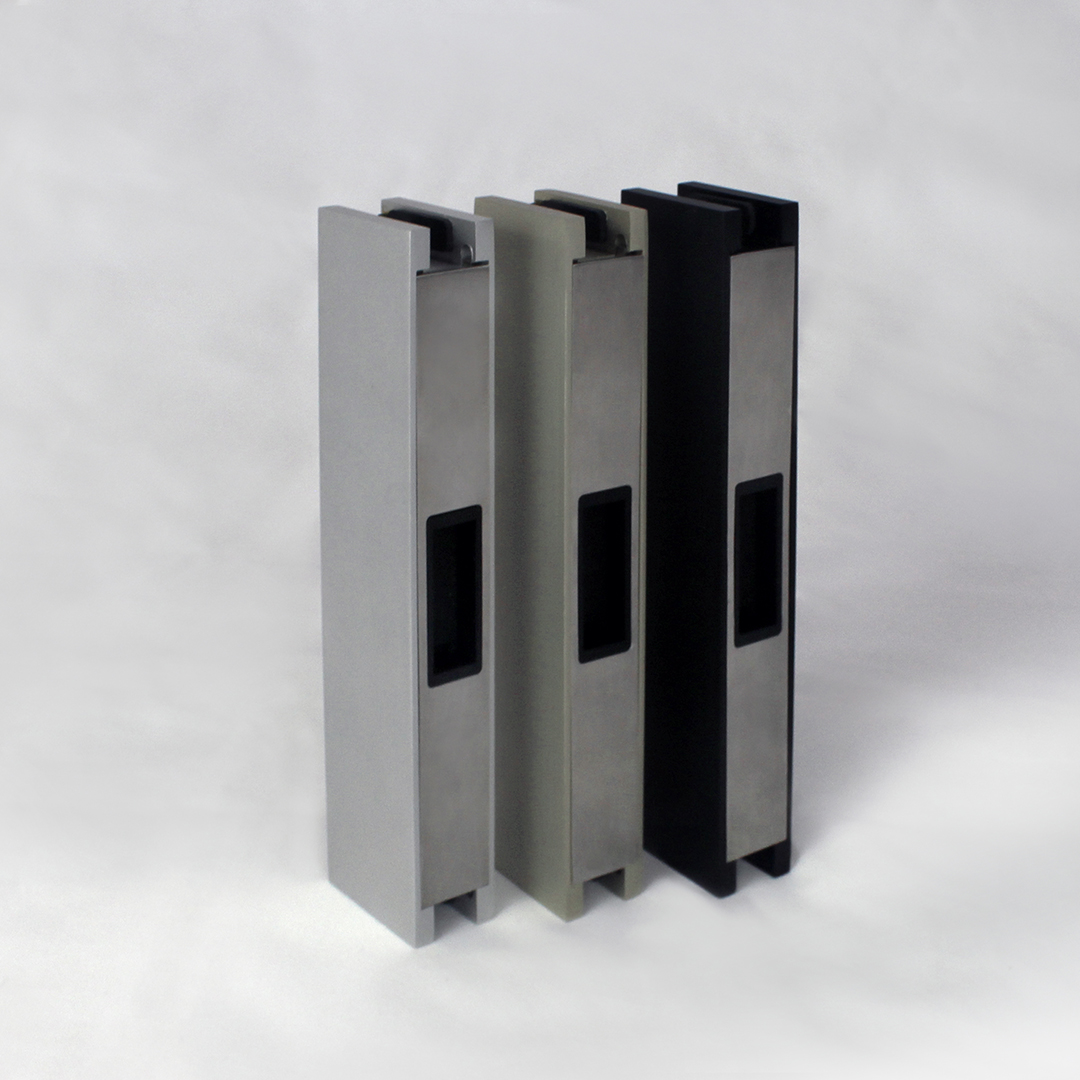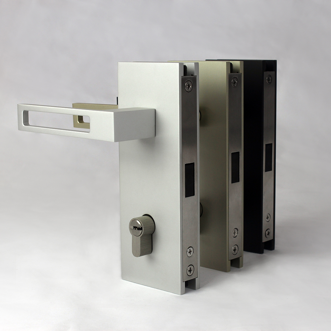 Las cerraduras están diseñadas para instalarse sobre un vidrio de 10 mm de espesor, en proyectos con cerradero a pared o a otro vidrio, dependiendo de la necesidad proyectual.