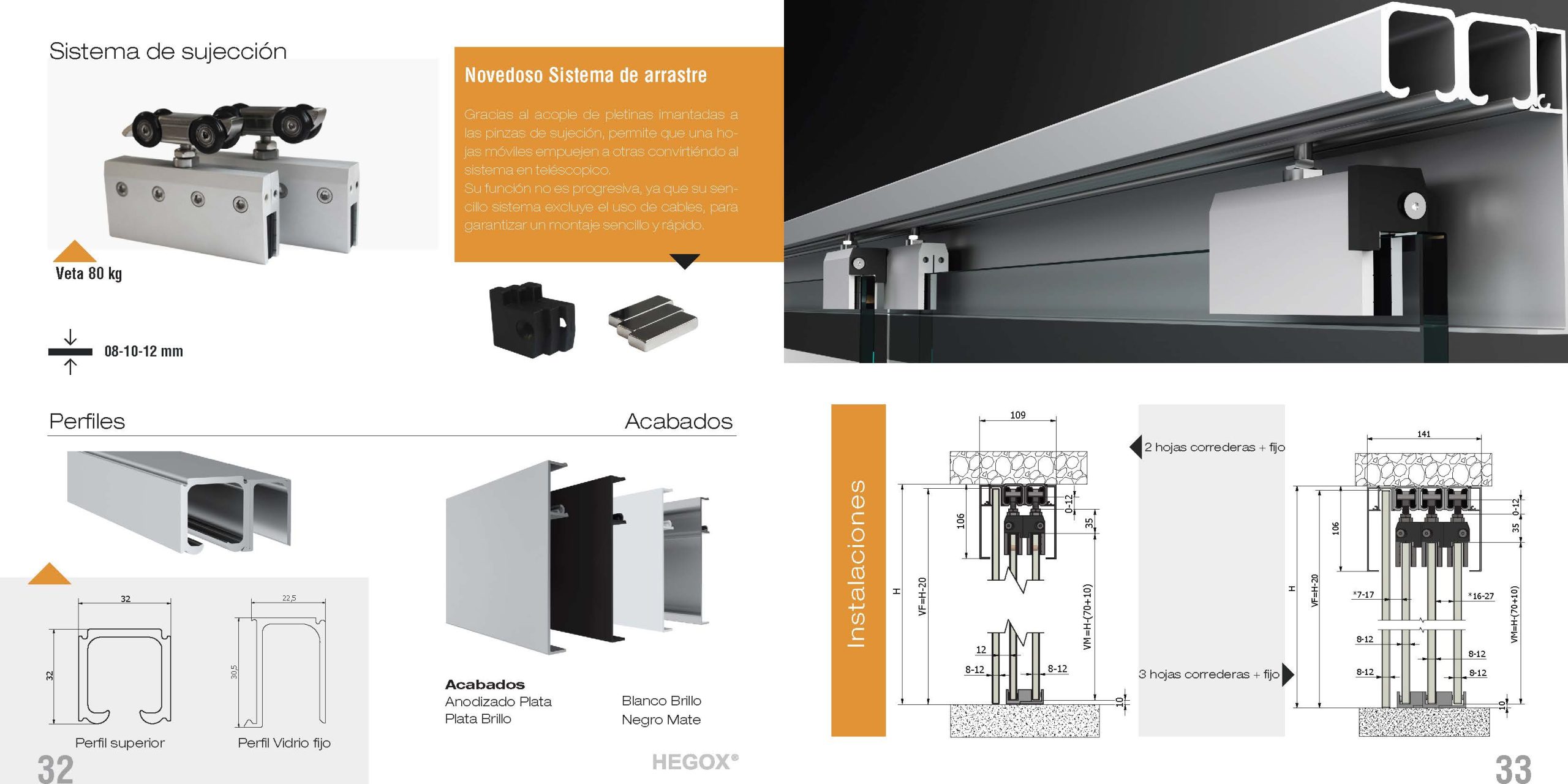 El nuevo modelo Hegox Veta sale al mercado para revolucionar el mundo de las correderas telescópicas de vidrio, ya que posee un nuevo sistema de arrastre reforzado por imanes de aluminio, que hace que se convierta en una característica única y especial.